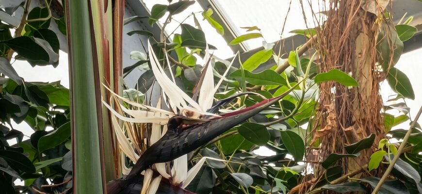 Стрелиция Николая — вечнозелёное тропическое растение. Часто его называют «белой райской птицей» или «диким бананом». Этот цветок может вырастать до трёх метров, его украшают мощные листья и нежные белые соцветия, которые напоминают голову птицы.