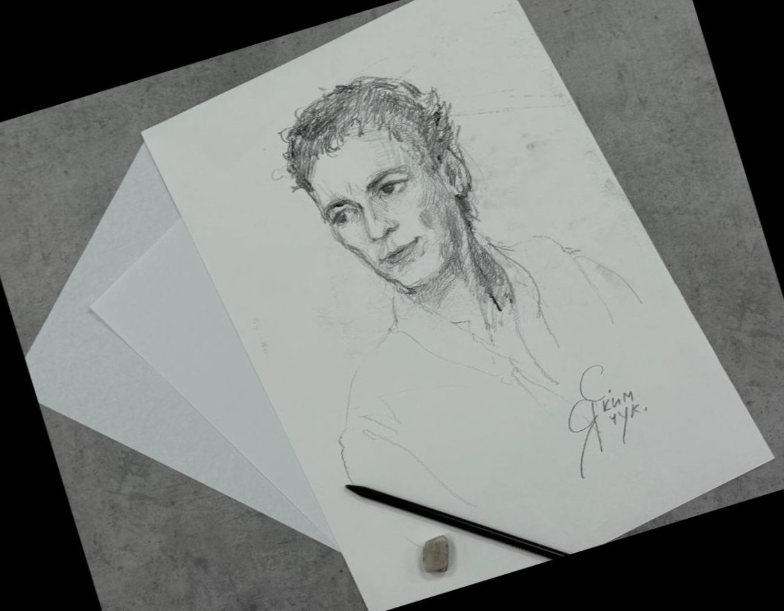… На выходе я изловила троих — преподавателя колледжа искусств, свободного художника и студента. Один набросок показался мне наиболее похожим.