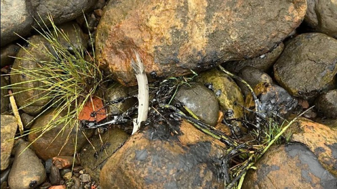 Как выяснилось, чтобы найти пятна мазута, не обязательно знать конкретную точку – линия побережья в районе Кольского моста в черных липких пятнах. А в пятнах – птичьи перья. Особенно много следов разлива нефтепродуктов у сливной трубы Южной котельной ТЭЦ. Горожане спрашивают: а не связан ли разлив нефтепродуктов со стартом отопительного сезона в социальных учреждениях?