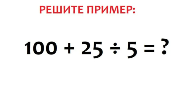 Пример, который надо решить за 37 секунд, выглядит вот так: 100 + 25 ÷ 5 =?