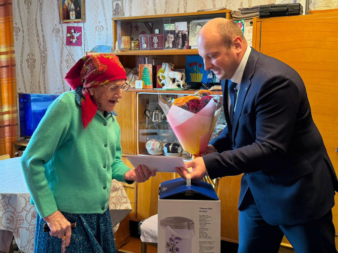 Сто лет исполнилось жительнице Оленегорска Антонине Андреевне Судаковой. Глава города Сергей Пашинский вручил ей поздравление от Президента России Владимира Путина.