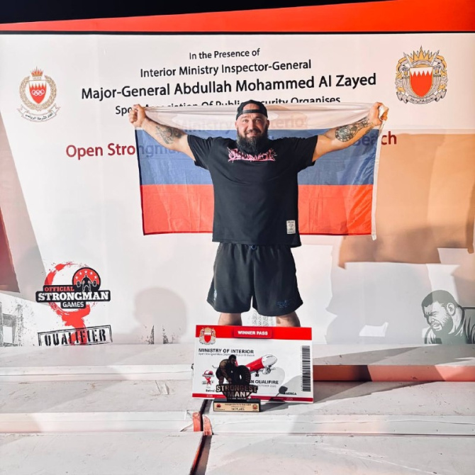 Пять упражнений, среди которых подъем 270 килограммов в становой тяге, сделал мурманский силач Леон Мирошник и одержал победу в международном турнире по стронгмену «Сильнейший на пляже». Соревнования состоялись на островном государстве Бахрейн в Персидском заливе.