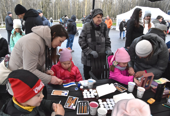 Дети вместе со взрослыми с азартом участвовали в тематических мастер-классах и рисовали мелками на асфальте. Самые эрудированные проверяли себя в викторине по истории Дня народного единства, вращая лототрон с номерами вопросов. Желающие мастерили оригинальные флаги России, обводя контуры своих ладоней на цветном картоне или рисовали на деревянных плашках всё, что подсказывало сердце.