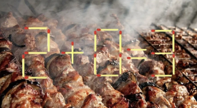 Взгляните на иллюстрацию. Аппетитный фон, не правда ли? Но мы сейчас не об этом. На картинке представлен пример, и видно, что он неверный. Ошибку исправит перестановка всего одной спички, так что скорее вглядывайтесь и думайте, какую именно спичку переложить.