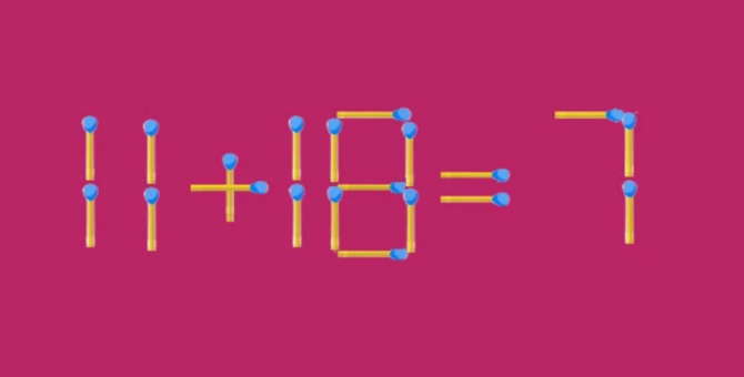 Посмотрите на пример, который представлен выше. Здесь допущена грубая математическая ошибка. Ваша задача — исправить её. Как это сделать? Достаточно просто передвинуть одну спичку, но делать это нужно с умом.