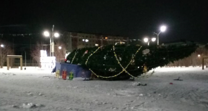 А в Полярном из-за сильных порывов ветра, скорость которого превышала 20 метров в секунду, упала новогодняя ёлка. Повалило ёлку и в Заполярном, сообщают северяне.
