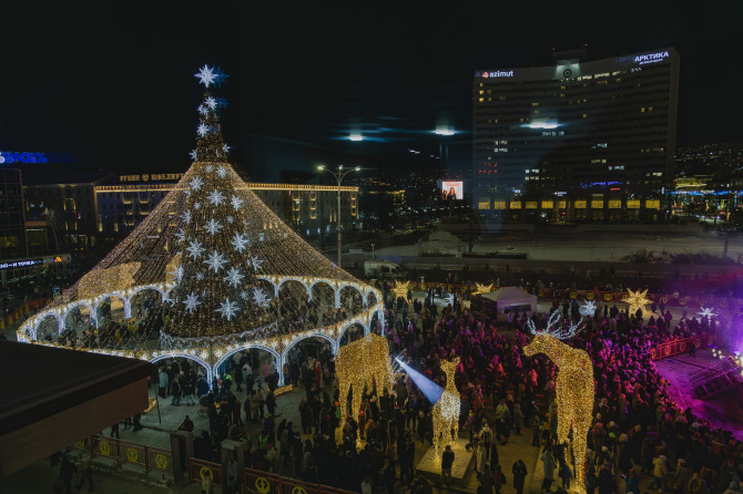 Вчера на площади у «Меридиана» торжественно включили огни на главной новогодней ёлке города. Теперь украшенная ёлка будет напоминать жителям, что зимние праздники уже близко.