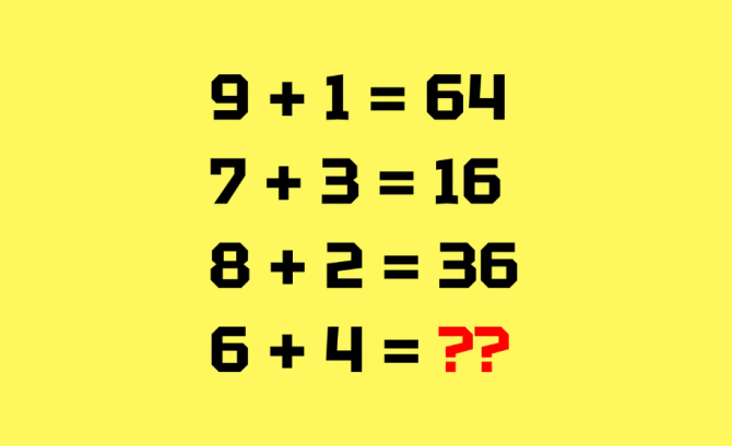Итак, взгляните на изображение. На основе первых трёх примеров постарайтесь определить замысловатую логику последнего равенства. Подумайте, какое число должно находиться на месте вопросительных знаков.