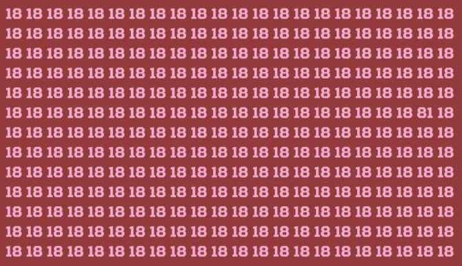 Взгляните на изображение с множеством одинаковых чисел. Нужно найти лишь одно, которое, словно белая ворона, нарушает гармонию. Правда, в отличие от птицы, его поиск нельзя назвать лёгким. Попробуйте отыскать число 81 всего за 14 секунд. Время пошло!