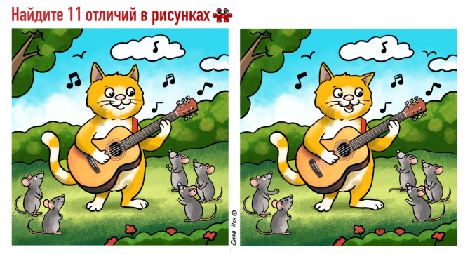 Посмотрите на головоломку, которая изображена выше. Здесь вы видите две идентичные картинки. Но это только на первый взгляд: на самом деле здесь аж 11 различий. Вашим зорким глазам нужно разглядеть каждое из них. Помните: у вас всего 1 минута на решение.