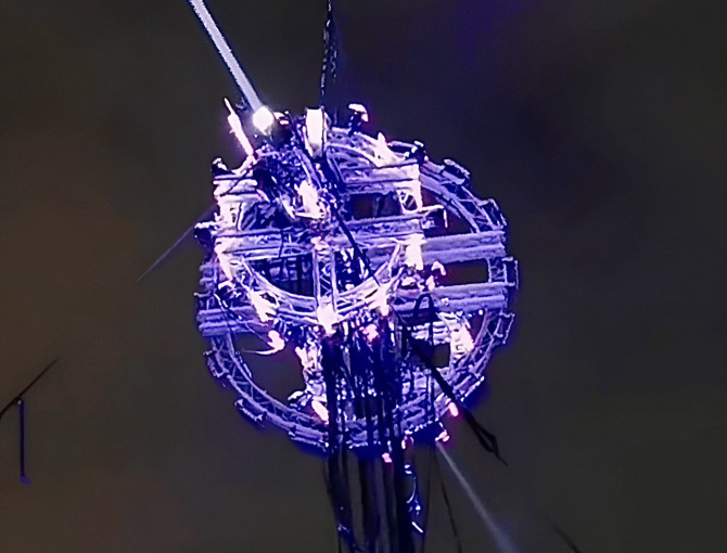 Но фотографии не сравнить с впечатлением, как сейчас модно говорить, «в моменте». С первого взгляда объект поражает своим футуристичным видом, напоминающим высокотехнологичный артефакт будущего. В темноте полярной ночи он оживает, переливаясь разными цветами: всполохи изумрудного и синего, словно отголоски северного сияния, сменяются холодным белым свечением льдов. Это визуальное оформление дополняется необычным музыкальным сопровождением в арктическом стиле. Медитативные напевы китов переплетаются с эмбиент-мелодиями, создавали гипнотическую и немного завораживающую атмосферу, которая переносит зрителя в самую сердцевину холодного, но живого Севера.