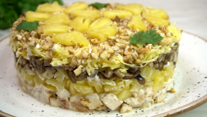 Новогоднее меню — повод приготовить новенькие и не надоевшие блюда, хотя некоторые салаты никогда не покинут своего почётного места на праздничном столе. К такому можно отнести салат с курицей и ананасами.