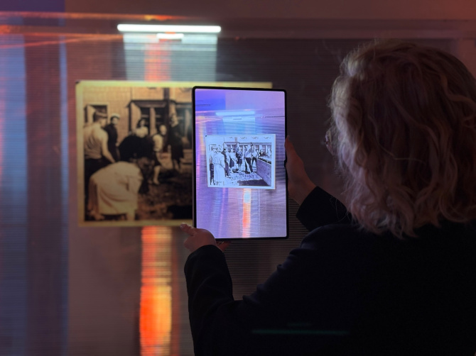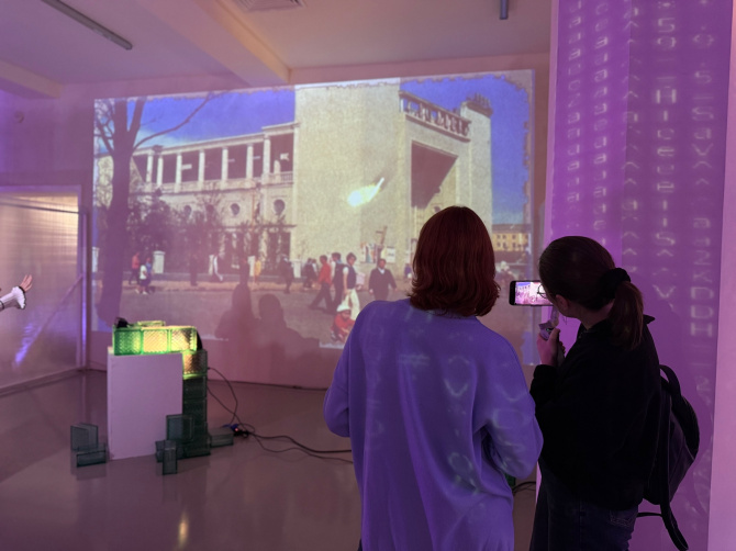 Ну, а пока журналистам удалось увидеть красивый фасад здания и первый этаж, где расположилась выставка с фотографиями советских времён, которые можно оживить с помощью специального приложения, а ещё артефактами, найденными во время проведения реконструкции здания, и интерактивными проектами, которые разработали педагоги центра во время занятий с воспитанниками.