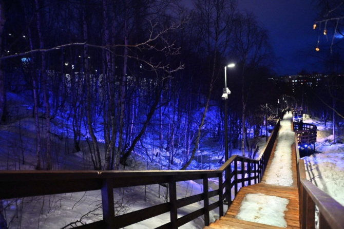 Установка подсветки стала очередным этапом развития территории. Ранее, в 2025 году, в рамках губернаторского плана «На Севере — жить!» здесь обустроили променад протяжённостью более 300 метров и площадью 767 квадратных метров с деревянными настилами, ограждениями и зонами отдыха. Формирование комфортной городской среды остаётся одним из ключевых направлений муниципальной работы.