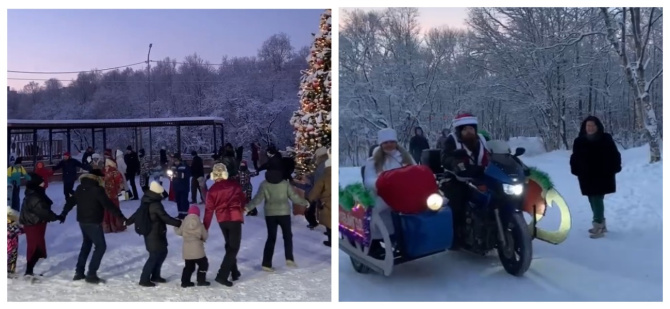 Горожане, несмотря на сильные морозы, собрались весело встретить Рождество Христово. Сотрудники ДК "Строитель" и Центра досуга молодежи организовали праздничное мероприятие в обновленном городком парке.