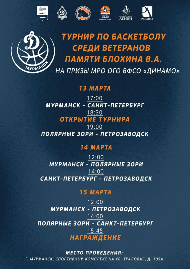 Игры пройдут в спортивном комплексе на улице Траловой, 105а в Мурманске. Турнир проводится на призы ВФСО «Динамо».