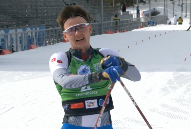 Соревновались биатлонисты в тёплую солнечную и безветренную погоду при плюсовой температуре. Мурманчанин занял третье место.