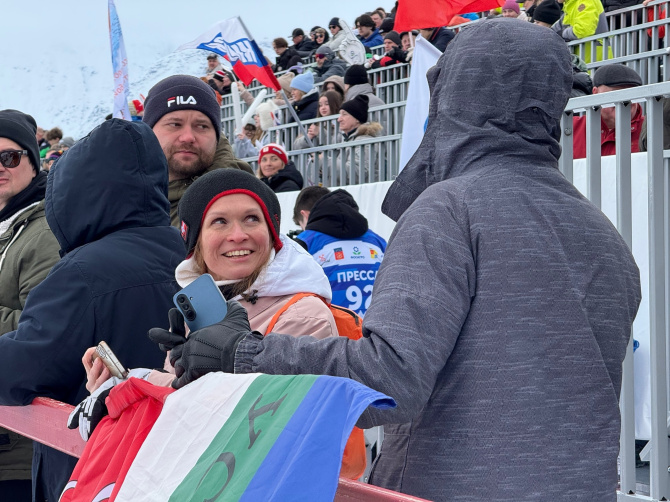В этот день в «Тирвасе» трибуны гудели. Болельщики подбадривали лыжников, шумели трещотками и дудками. Многие приехали в Мурманскую область из других городов, чтобы поддержать своих спортсменов. Алексей приехал в Кировск из столицы, чтобы поболеть за всех московских спортсменов. А Екатерина приехала в Мурманскую область из Санкт-Петербурга:
