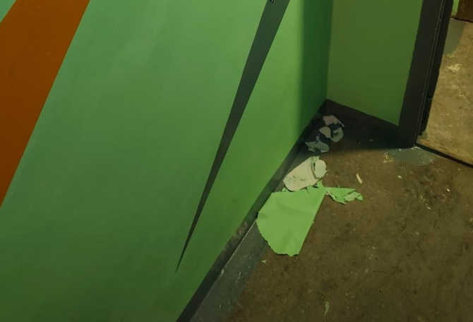 Но не успели рабочие закончить работы, как отремонтированные стены начали портить. Сначала сотрудники УК заметили сколы, словно кто-то случайно задел окрашенные стены.
