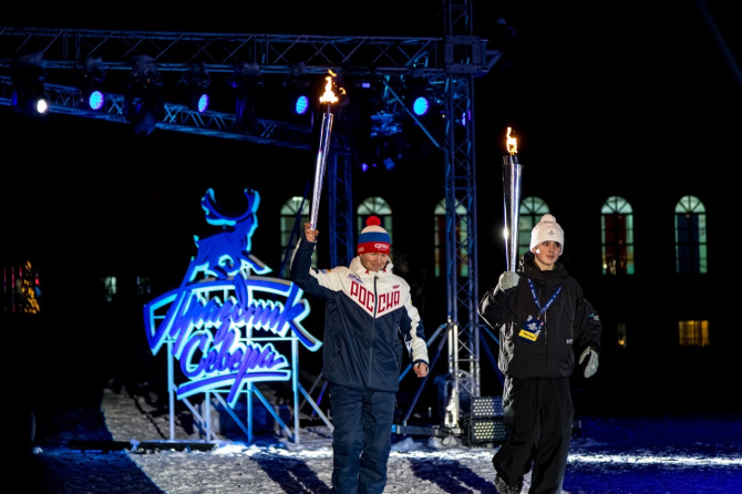 Кульминацией торжественной церемонии открытия 88-го Праздника Севера и 63-го Праздника Севера учащихся стала эстафета передачи и зажжение огня Полярной Олимпиады. Огонь к факелу поднесли призер первенства России 2022 года по сноуборду Артем Карепин, мастер спорта международного класса по спорту слепых и слабовидящих людей Екатерина Мошковская, трехкратный чемпион мира по натурбану, пятикратный чемпион Европы, четырехкратный обладатель Кубка Мира Иван Лазарев, а также представитель коренного народа саами Яков Яковлев.