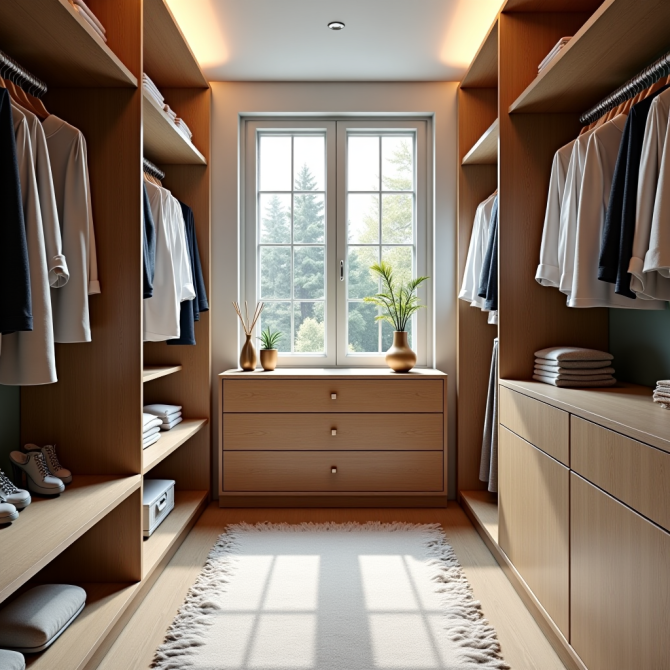 Лайфхак: Если у вас есть только гардеробная, а кладовки нет, предусмотрите там место для хранения гладильной доски, пылесоса и сушилки (если она переносная).