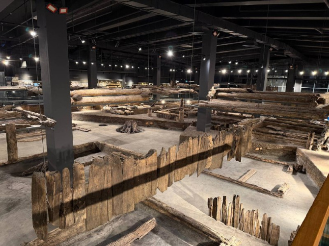 Человек оказывается буквально внутри исторического поселения: чтобы стереть грань между прошлым и настоящим, даже дорожки здесь стеклянные. Множество предметов быта, орудий труда, украшений. Во влажном слое хорошо сохранилась даже одежда.