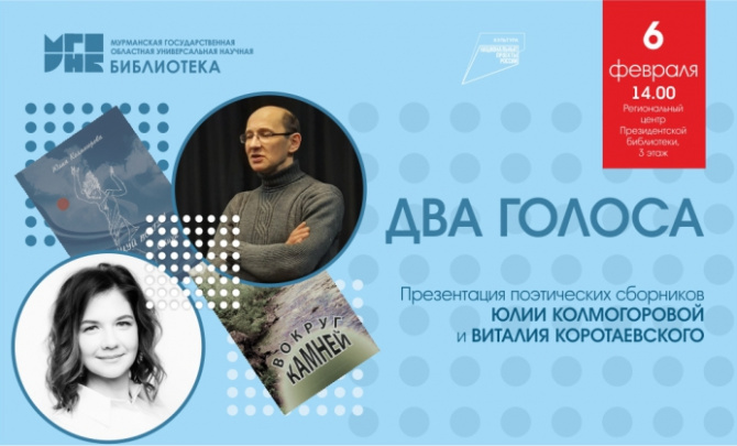 В Региональном центре Президентской библиотеки 6 февраля состоится презентация поэтических сборников Юлии Колмогоровой и Виталия Коротаевского «Два голоса».