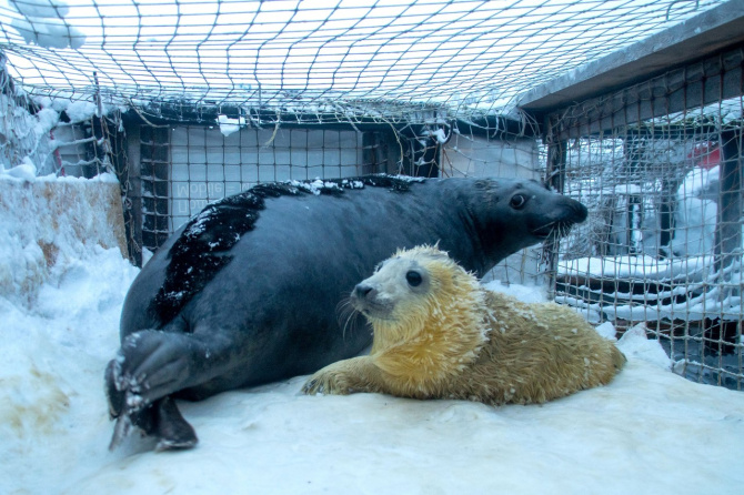 На одном из научных полигонов ММБИ на свет появился щенок краснокнижного серого тюленя, сообщает Мурманский морской биологический институт. Это второй в истории содержания серых атлантических тюленей детеныш, рожденный в неволе. Пол щенка пока неизвестен.