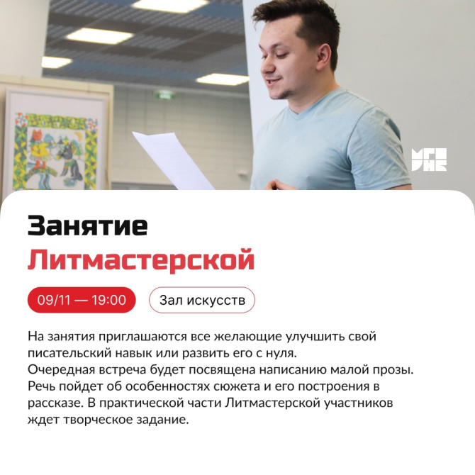 Очередная встреча будет посвящена написанию малой прозы, а именно рассказу. Речь пойдет об особенностях сюжета и его построения в рассказе. В практической части Литмастерской участников ждет творческое задание.