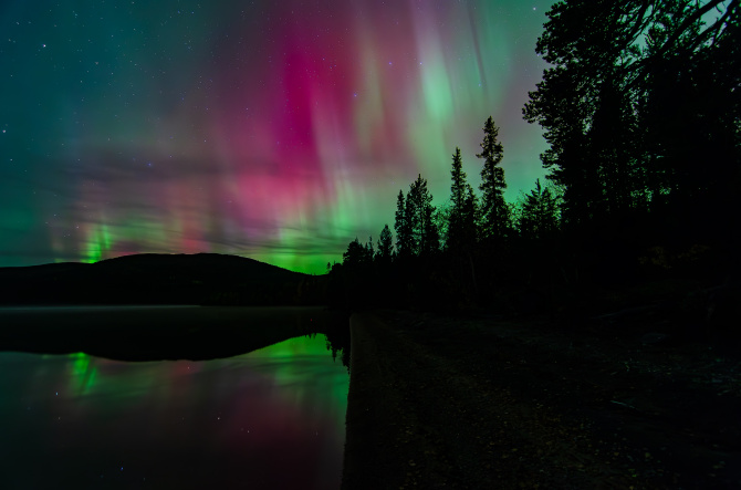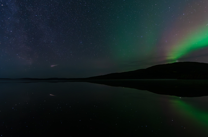 Сделаны снимки поздним вечером в субботу, 27 сентября. На фотографиях можно увидеть Млечный Путь, яркий метеор и полярное сияние.