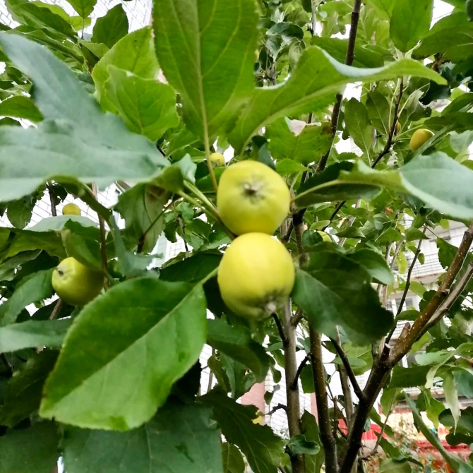 Вырастили яблоню на территории мурманской областной детской клинической больницы. Уже второй год дерево плодоносит.