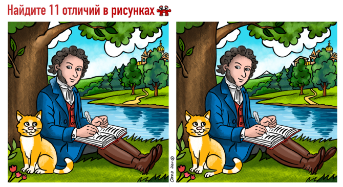 Посмотрите на картинку, которая представлена выше. Здесь изображен известный русский поэт. На первый взгляд может показаться, что изображения идентичны. Но здесь целых 11 отличий — и вам нужно найти каждое из них.