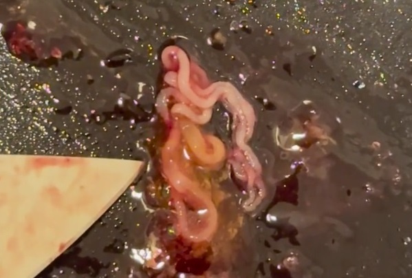 Один из мурманских рыбаков опубликовал в группе «Fishing 51. Рыбалка и Охота на Кольском п-ове» видеозапись, на которой видно живых крупных паразитов. Обнаружил их северянин в выловленной им кумже.