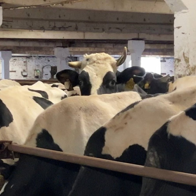 В хозяйстве содержится около 1200 голов крупного рогатого скота, из которых порядка 650 — дойные коровы. Условия содержания животных различаются: часть бурёнок находится в свободном выгуле, другие — на привязи. Такой подход позволяет учитывать особенности каждой коровы, ведь некоторые из них боятся открытых пространств или когда-то получали травмы.
