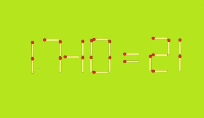 Итак, перед вами равенство «17-10=21», которое, разумеется, решено с ошибкой. Вам нужно передвинуть одну спичку, чтобы получился филигранный пример. На первый взгляд задачка покажется заковыристой, но упорство и труд, как говорится, все перетрут.