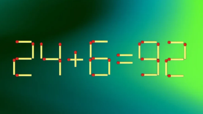 Пример «24+6=92» составлен с явной ошибкой. Вам нужно сообразить, какую спичку переставить, чтобы получить верное равенство. Самые смекалистые уже догадались, что девятку нужно превратить в тройку, а вместе с тем и второе слагаемое удастся подкорректировать. В результате мы получаем правильное решение, к которому нет никаких вопросов.