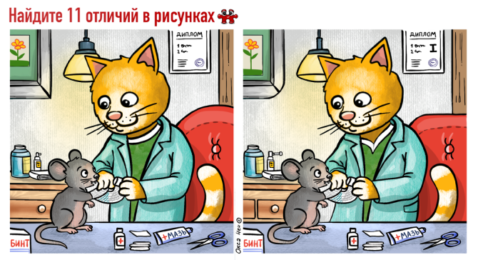 Взгляните на изображение выше. Здесь две картинки, между которыми есть целых 11 отличий. Попробуйте найти каждое из них и докажите себе, что ваш глаз — алмаз.