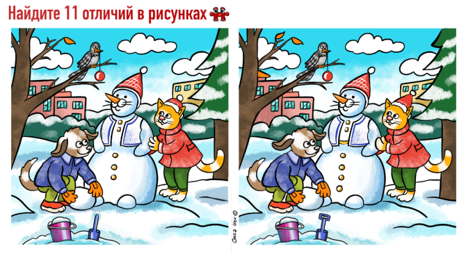 Одной из задачек поделился Журнал головоломок. Чтобы решить её, вам необходимо найти 11 отличий между картинками, которые представлены выше. Присмотритесь внимательно и помните, что у вас не больше 1 минуты на рассуждение.
