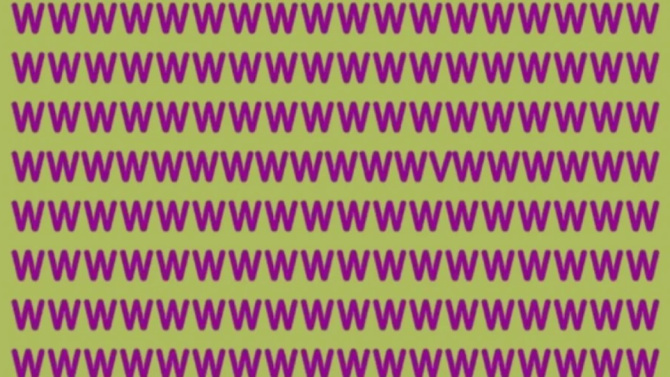 Эту головоломку нужно распутать за 5 секунд. Среди множества букв W необходимо найти одну единственную V. Для мастеров концентрации эта задача не составит труда. Заметить эту букву сразу непросто, ведь она теряется из-за сходства с соседями.