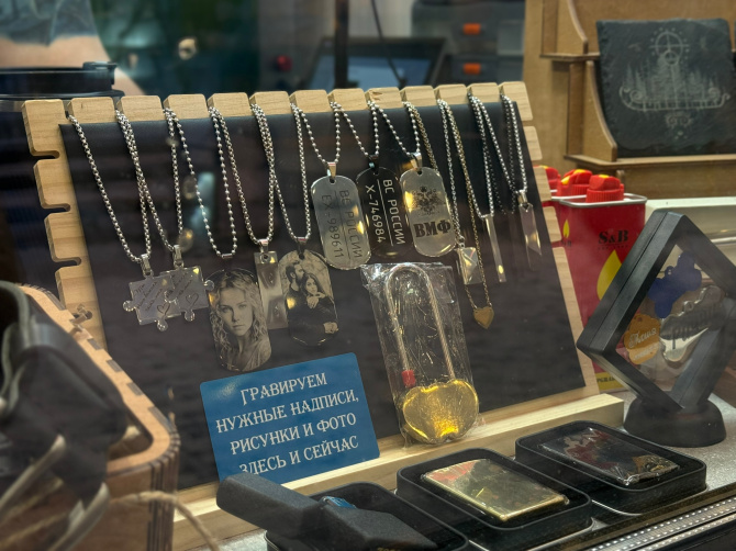 Ещё одна из услуг — сувенирная гравировка. Как рассказывает предприниматель Николай, каждый желающий может прийти и купить уже готовый сувенир. Можно принести какой-то свой предмет из металла или дерева и заказать гравировку. Нанести можно фотографии, логотипы, надписи. Так, например, один из клиентов попросил украсить черенок лопаты. К слову, цена на любой заказ начинается от 800 рублей, далее ценник будет зависеть уже от сложности и масштабности задачи.