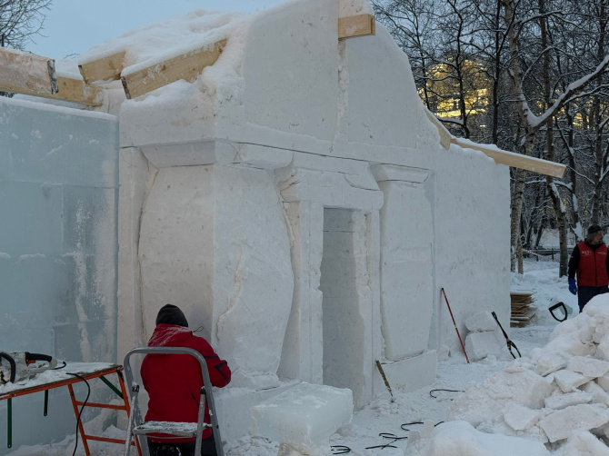По традиции работают фудтраки. Есть почтовый домик, а с 26 декабря заработает ледяной бар. О том, что такое ледяной бар многие узнали после «завирусившихся» в сети роликов из Москвы. Теперь такое развлечение будет и у северян. Рабочие все ещё занимаются возведением ледяных конструкций, в том числе и лабиринта-ловушки. Оформлены новогодние фотозоны.