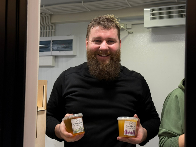 «У меня три пасеки в Лопарском. Сейчас пчёлок примерно 20 тысяч, летом их больше — до 50 тысяч. А пока я делюсь лакомством с жителями и гостями Мурманской области, трудяжки переживают зимний период, отдыхают», — рассказывает Артём.