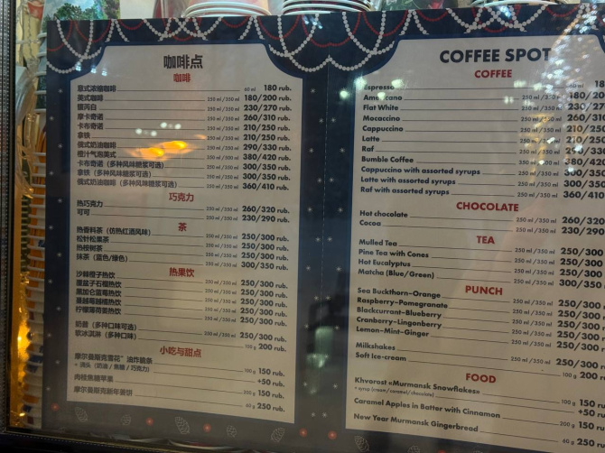 Так, например, в одном из киосков можно приобрести и полакомиться только что приготовленными арктическими блинчиками с самыми разными начинками: с олениной, икрой, колбасками из мяса лося, грибами, мясом краба, красной рыбкой. Есть и сладкие — с морошкой, мандаринами, ананасами, клубникой и черникой, брусникой. Что касается цен, то за парочку блинов с красной рыбкой и стаканчик чая придётся заплатить примерно от тысячи до полутора тысяч рублей.