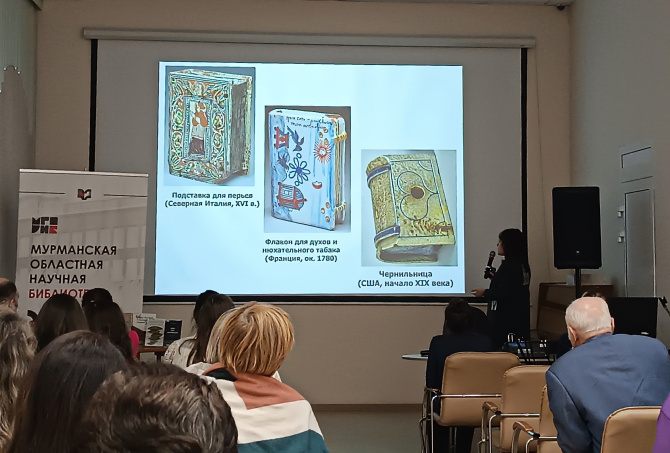 19 декабря в Мурманской областной научной библиотеке состоялась лекция московского филолога и книговеда, доктора педагогических наук Юлии Щербининой под названием «Упоение обманом: псевдокниги, библиомуляжи, лжебиблиотеки».