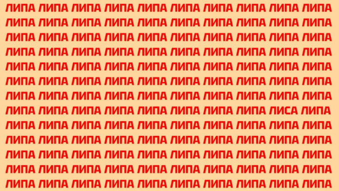 На изображении мы видим одинаковые слова, но среди них есть одно — отличие лишь в одной букве! На решение даётся всего 10 секунд. Специалисты советуют решать такие тесты не менее 4 раз в неделю.