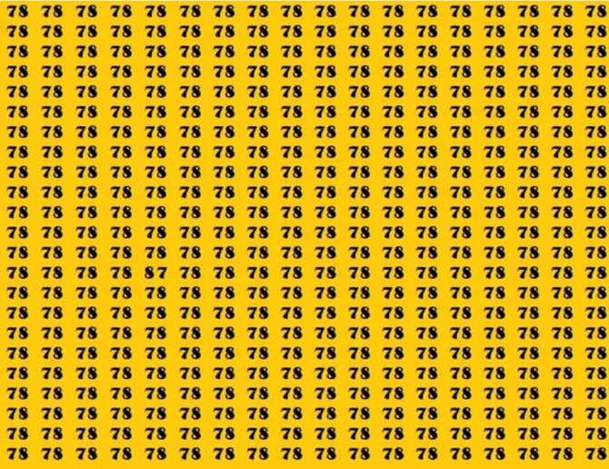 Итак, переходим к головоломке. Перед вами золотистое поле, усеянное одинаковыми цифрами. Удивительно, но здесь каким-то неведомым образом затесалось число 78. Его нужно найти всего за 8 секунд.