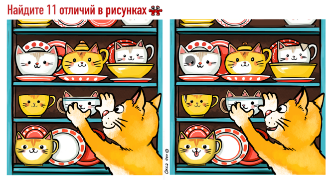 Посмотрите на картинки выше: здесь изображена одна и та же ситуация, но между ними есть 11 отличий. Сможете разглядеть каждое из них всего за 1 минуту? Время пошло!
