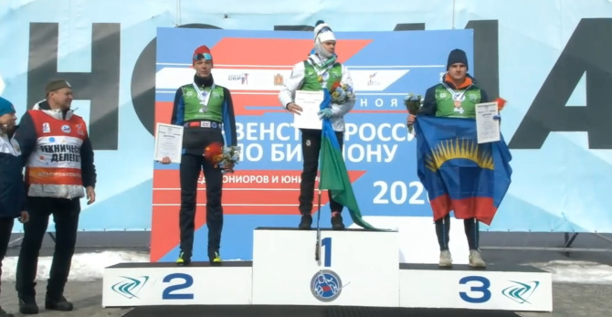Соревновались биатлонисты в тёплую солнечную и безветренную погоду при плюсовой температуре. Мурманчанин занял третье место.
