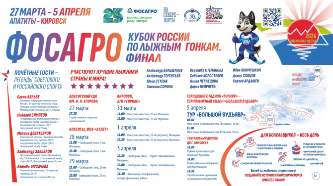 31 марта финал ФосАгро Кубка России по лыжным гонкам «переедет» в Кировск, на трассы лыжного комплекса «Тирвас». Здесь спортсмены пробегут 10 и 15 км классическим стилем и поучаствуют в спринте. Завершится финальный этап Кубка страны 5 апреля знаменитым забегом в гору – масс-стартом «Тур «Большой Вудъявр». Он уже в третий раз пройдет на Северном склоне горнолыжного курорта «Большой Вудъявр».