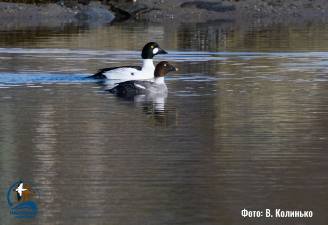 «Я встретил пару гоголей, которые плавали в полынье среди треснувшего льда. Птицы ныряли в воду и охотились», — рассказал сотрудникам заповедника фотограф Валентин Колинько.